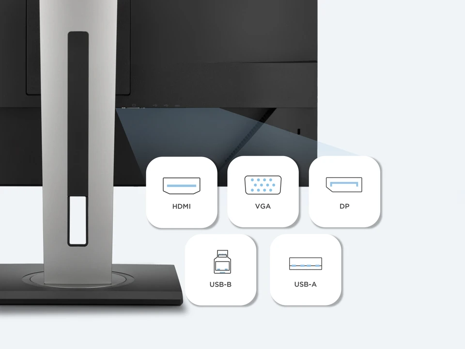 Pozostań połączony i pracuj efektywnie z wejściami HDMI, VGA i DisplayPort, co daje Ci swobodę łączenia monitora z szeroką gamą urządzeń. Zintegrowany hub USB 3.2 upraszcza codzienne zadania, oferując 3 porty USB-A umożliwiające szybkie przesyłanie danych oraz bezproblemowe połączenia z peryferiami, takimi jak klawiatury i myszy. Dodatkowo, port USB-B upstream oraz port USB-C downstream z zasilaniem 15W oferują wygodne, dedykowane ładowanie dla Twoich urządzeń, utrzymując przestrzeń pracy uporządkowaną i zasilaną.