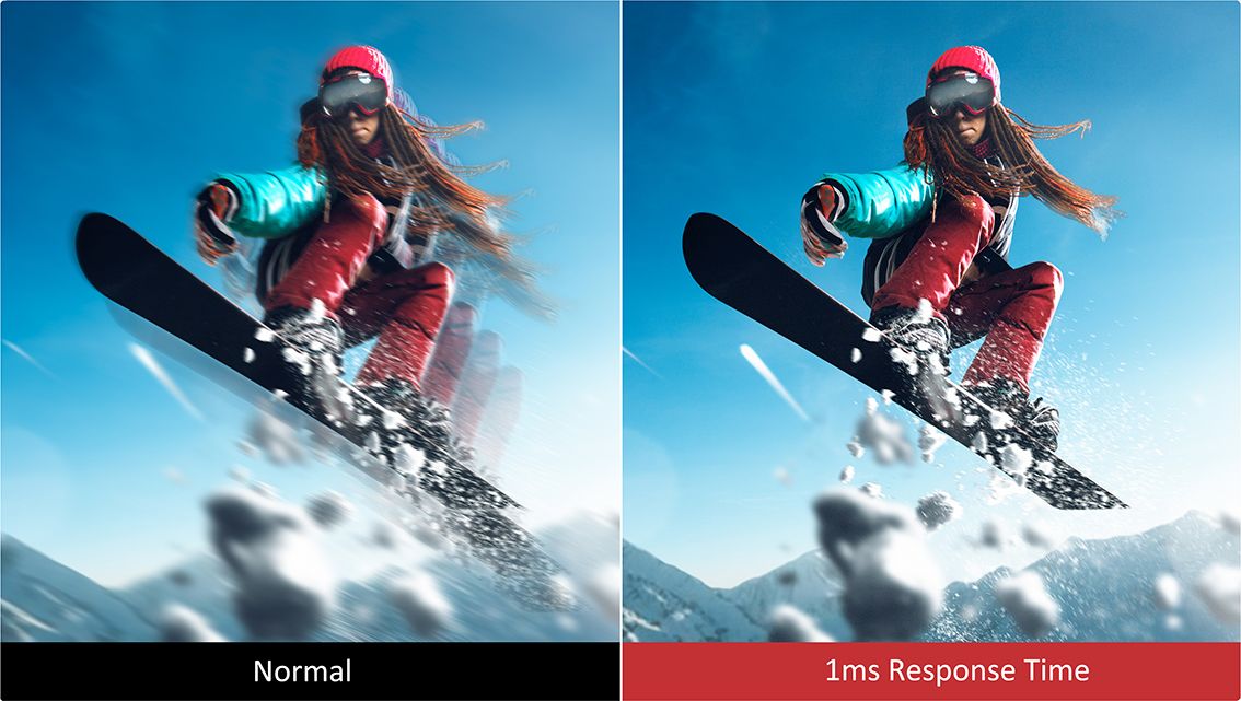 Dzięki niesamowicie krótkiemu czasowi reakcji MPRT wynoszącemu 1 ms ten monitor zapewnia płynne obrazy. Ten niesamowicie krótki czas reakcji jest idealny do najbardziej wymagających gier i zapewnia niesamowitą jakość obrazu podczas oglądania sportu lub filmów akcji.