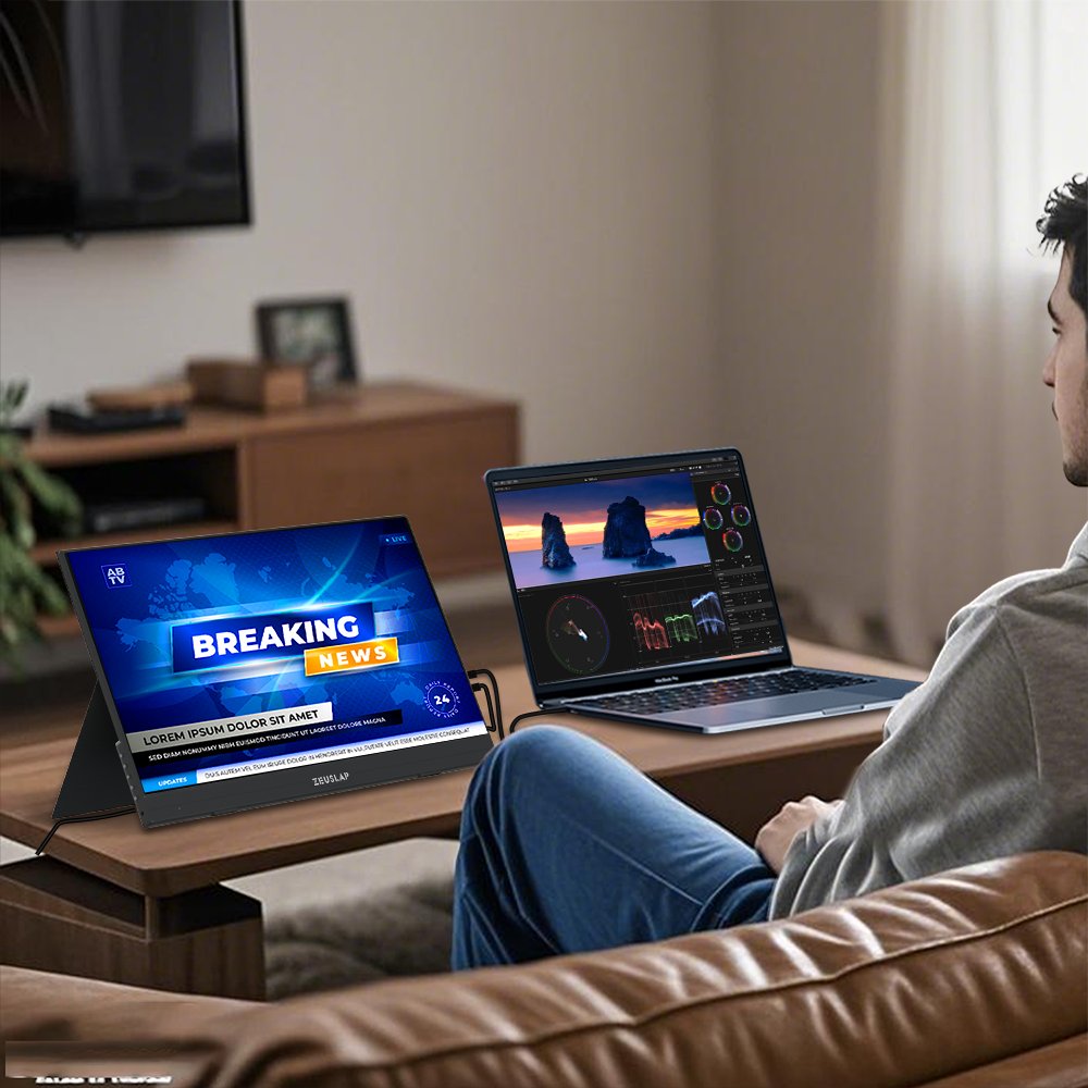 Monitor przenośny ZEUSLAP AP156 zwiększa Twoją przestrzeń roboczą o drugi ekran 15,6 cala Full HD. Podłączasz jednym kablem USB-C do laptopa i pracujesz z dwoma oknami obok siebie w biurze, pociągu czy kawiarni. Panel IPS 1920×1080 pikseli z efektem HDR pokazuje kolory naturalnie (66% sRGB, 47% NTSC, 262K kolorów), a jasność 250 cd/m² zapewnia czytelność w różnych warunkach oświetlenia.