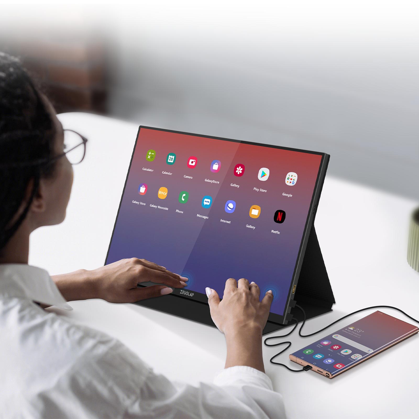 ZEUSLAP P16KT współpracuje z laptopami, smartfonami (iPhone 15+, seria Samsung Galaxy S21–S25, Note 8–10), konsolami (PS4, PS5, Xbox, Nintendo Switch) oraz komputerami stacjonarnymi. Dwa porty USB-C (wspierające przesyłanie obrazu, dźwięku i zasilania) oraz złącze mini HDMI dają elastyczność w podłączaniu różnych urządzeń. Standard VESA 75×75 mm umożliwia montaż na uchwycie lub ramieniu biurkowym.