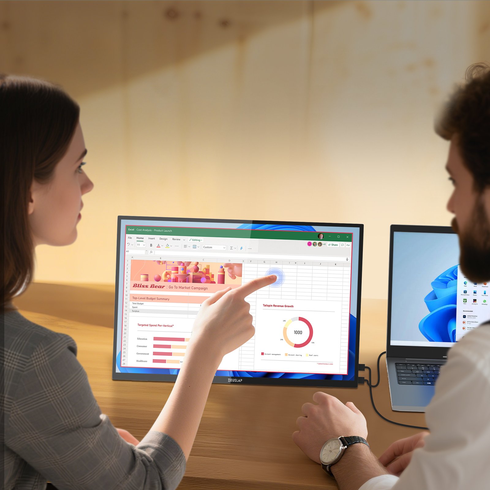 Przenośny monitor dotykowy 16 cali P16ST daje Ci duży obraz 2.5K i wygodną obsługę dotykiem. Podłączasz go do laptopa lub telefonu jednym przewodem USB C (gdy urządzenie wspiera Thunderbolt/pełne USB C), a w razie potrzeby zasilasz z ładowarki.