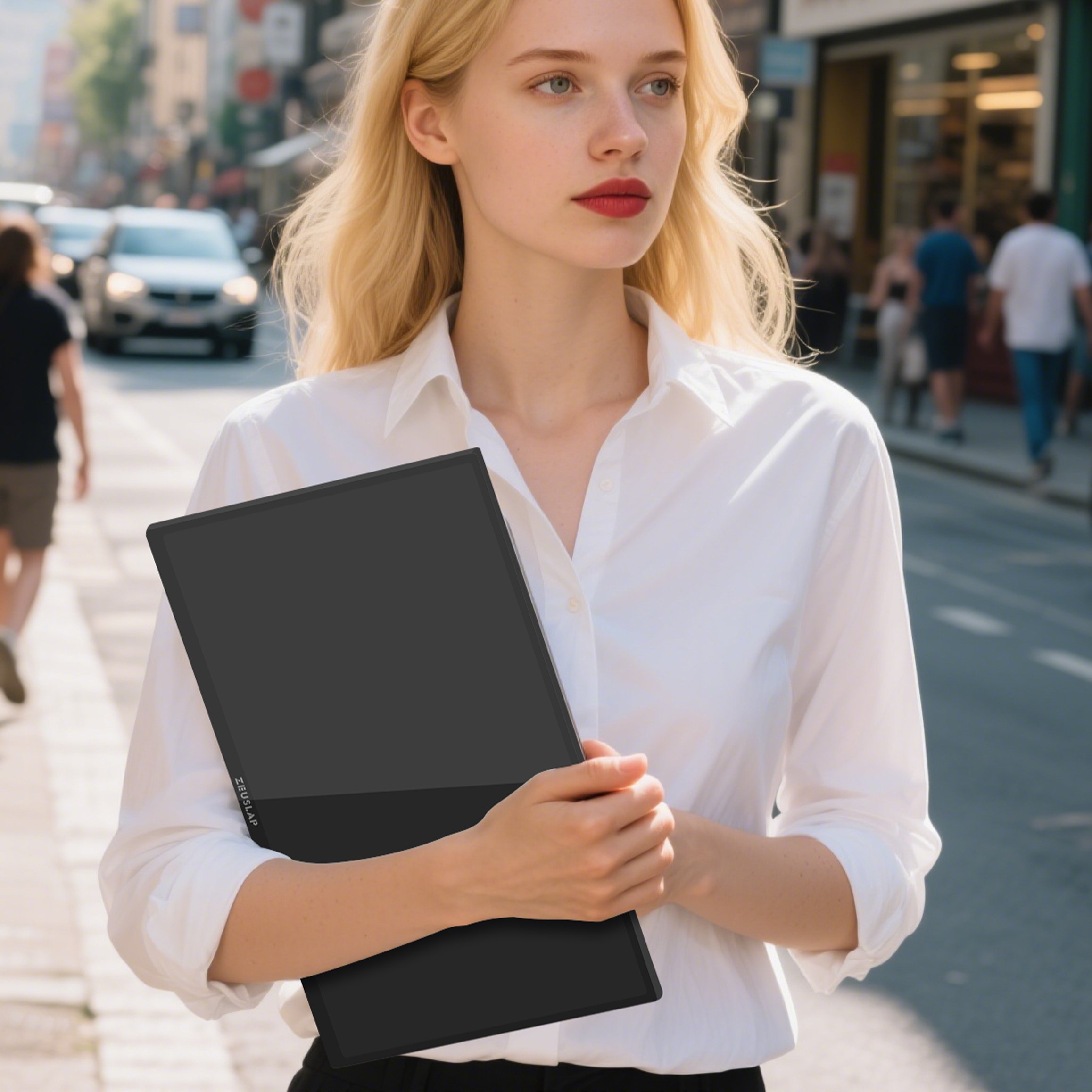 Zyskujesz drugi ekran do laptopa, który zmienia każde miejsce w biuro. Monitor przenośny ZEUSLAP P16T (16 cali, 1920×1200, ekran dotykowy) pokazuje projekty, dokumenty i arkusze obok siebie. Podłączasz przez USB-C, nic więcej nie potrzebujesz – laptop zasila ekran, więc pracujesz w kawiarni, pociągu lub hotelu tak samo wygodnie jak w biurze. Format 16:10 daje 11% więcej miejsca w pionie niż standardowy 16:9, więc widzisz całą stronę dokumentu bez przewijania.