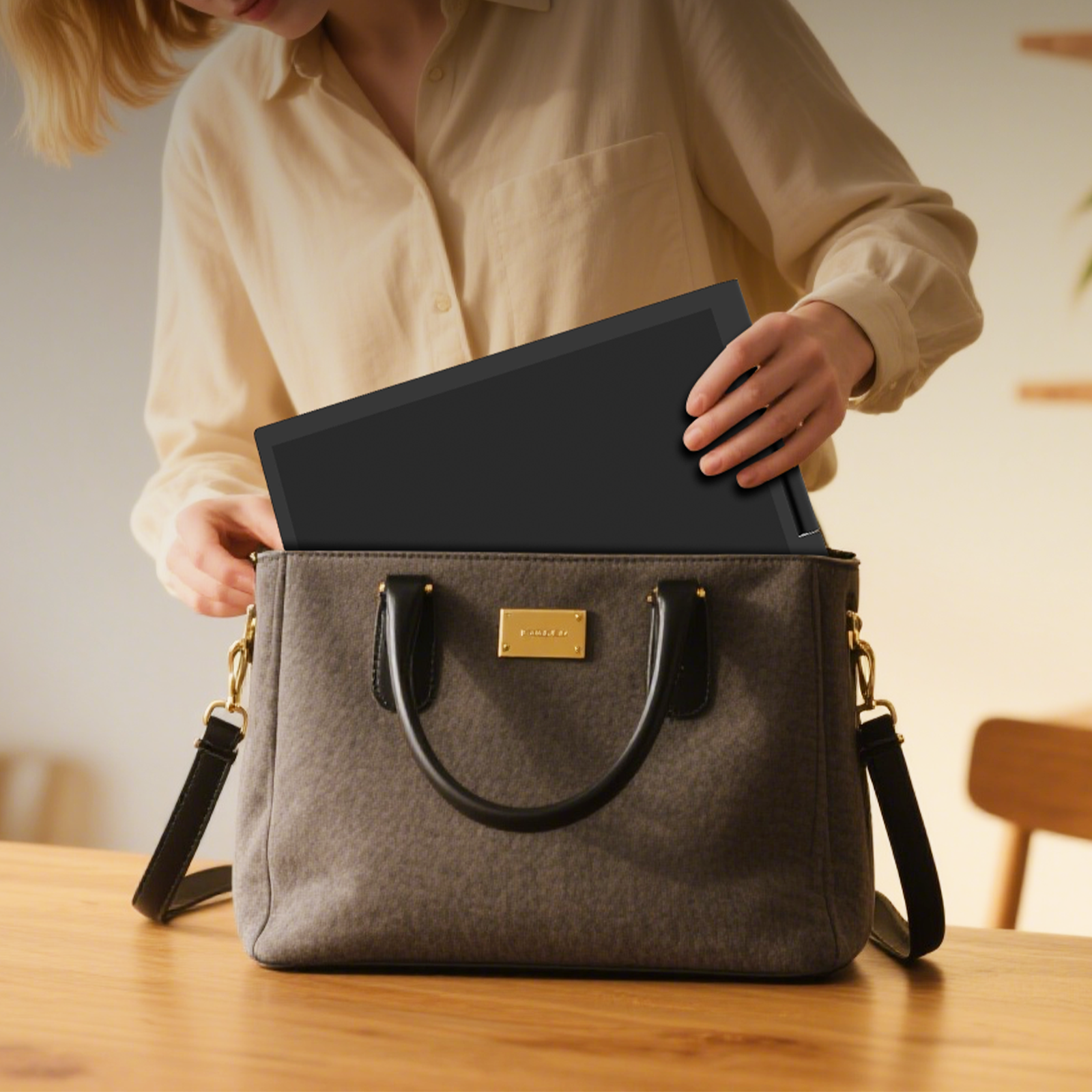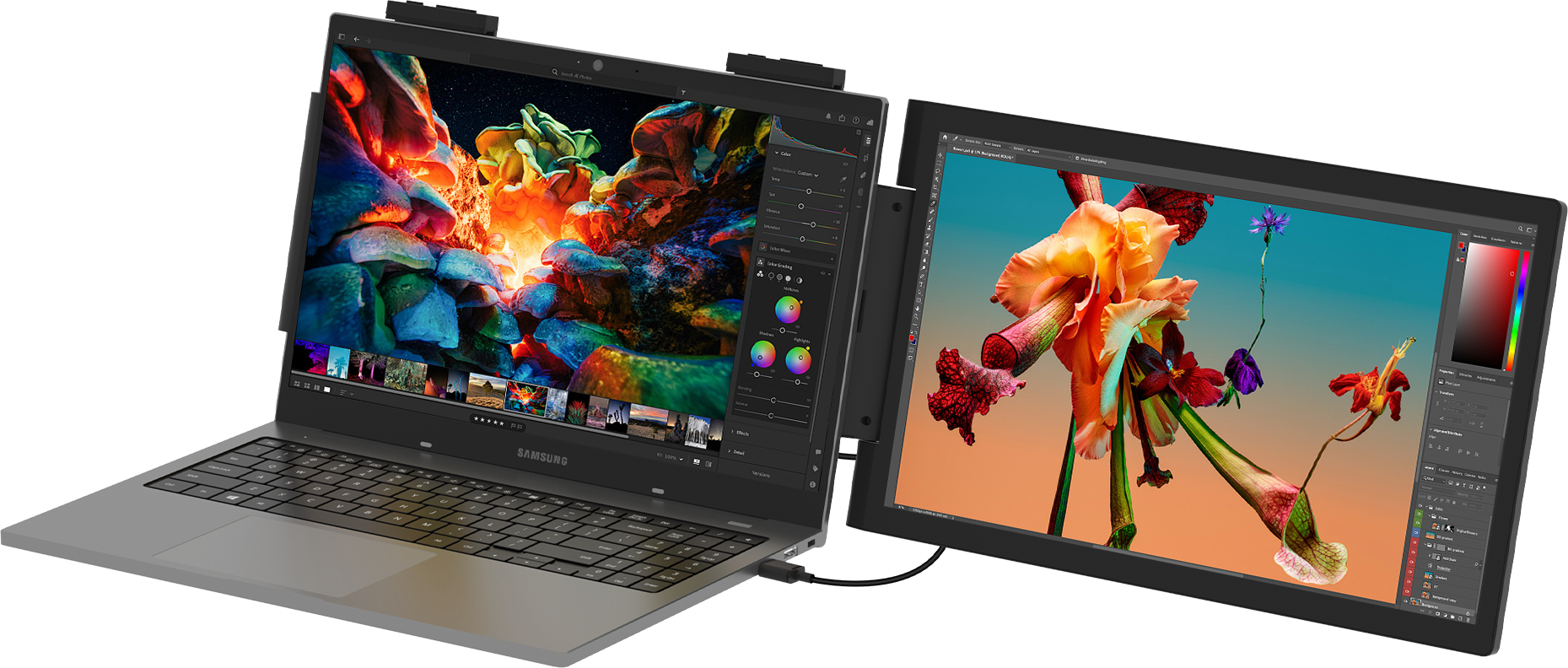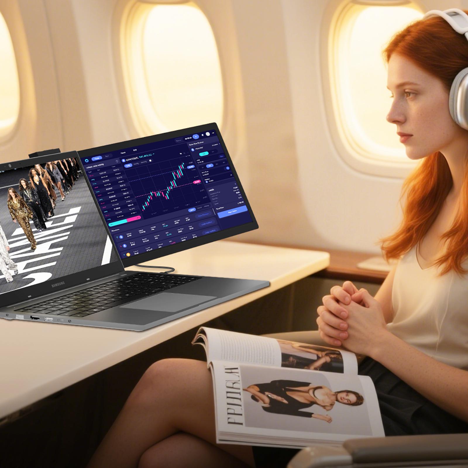 Ultrasmukła konstrukcja o wadze około 0,91 kg sprawia, że monitor łatwo mieści się w torbie lub plecaku. Regulowana podstawa stabilnie dopasowuje urządzenie do laptopa o przekątnej od 13,3" do 15,6", co poprawia komfort użytkowania i bezpieczeństwo sprzętu podczas transportu. Plug and Play oznacza szybkie podłączenie bez instalowania sterowników – jesteś gotowy do pracy w kilka sekund.