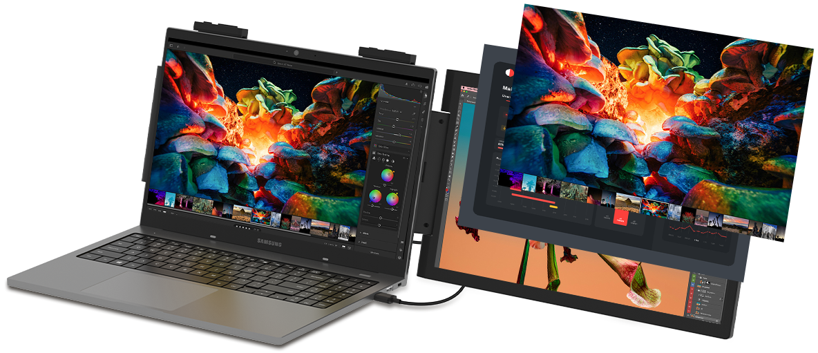Przestrzeń robocza o przekątnej 14 cali z rozdzielczością Full HD 1920×1080 ułatwia analizę danych, pracę w aplikacjach biurowych oraz komfortowe korzystanie z multimediów. Drugi ekran oznacza mniej przełączania między oknami, więcej widocznych informacji i szybsze wykonywanie zadań – niezależnie od tego, czy jesteś w biurze, w kawiarni czy w podróży.