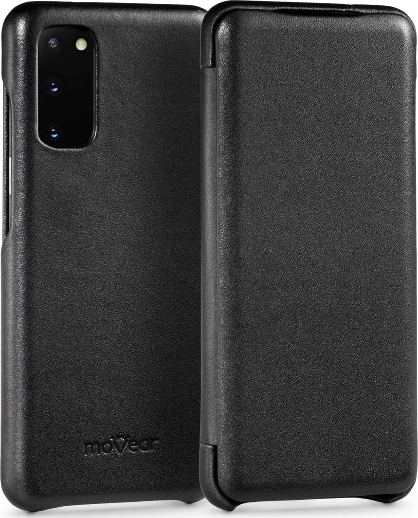 moVear moVear flipSide S Skórzane Etui do Samsung Galaxy S20 | Skóra Gładka | Pokrowiec slim z klapką, Czarny Standard