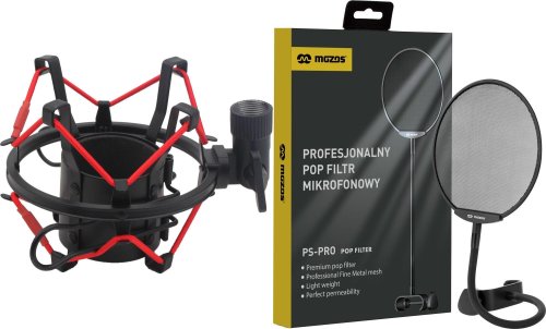 Mozos Mozos Kosz antywibracyjny 48-54MM (SHM2-RED) + Popfiltr mikrofonowy PS-PRO