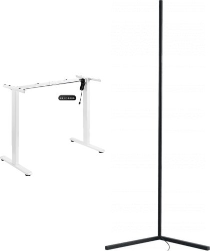 Mozos Mozos Stelaż do biurka biały z elektryczną regulacją wysokości BIAŁY + Lampa podłogowa narożna LC-RGB LED czarna
