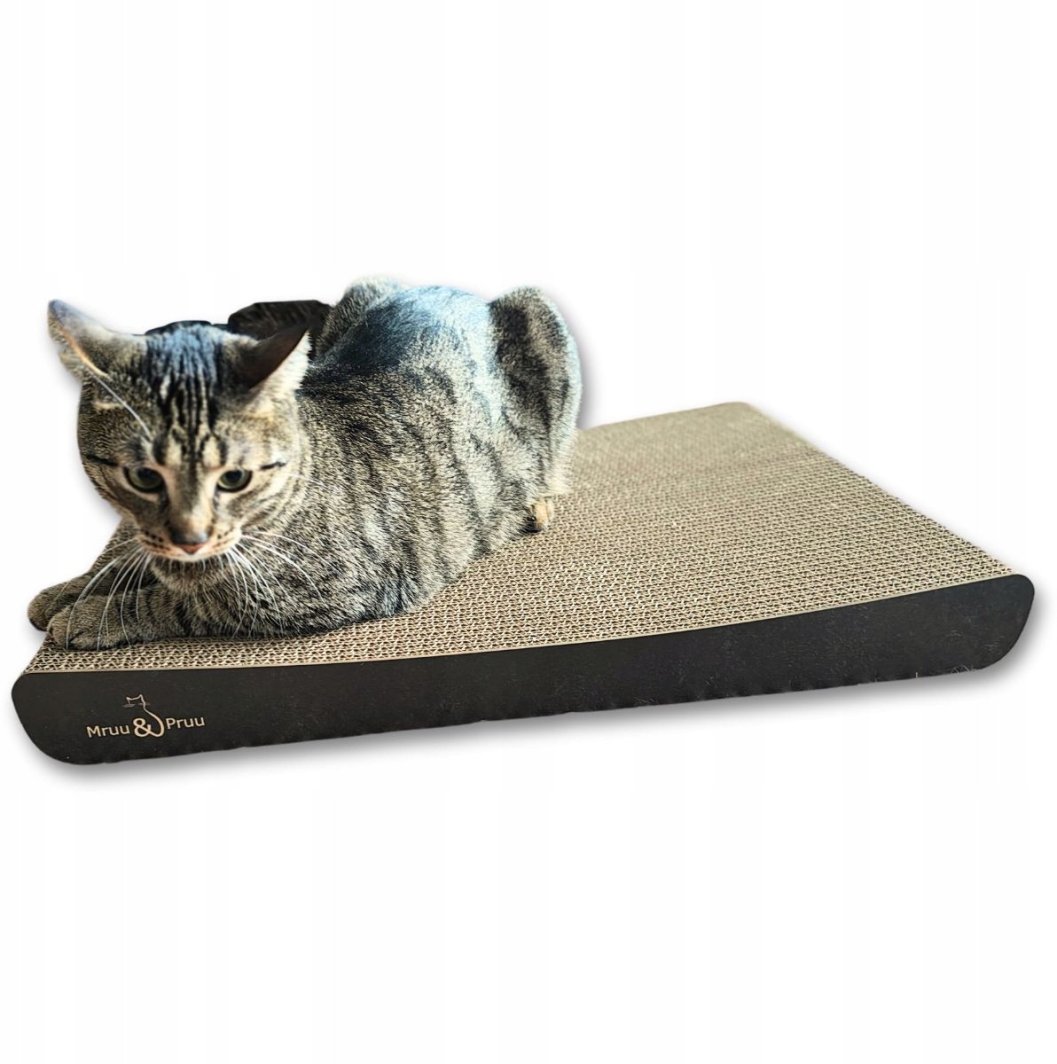 Drapak kartonowy Sigma Mruu&Pruu w eleganckim czarnym kolorze to wszechstronny produkt, który łączy w sobie funkcje legowiska, zabawki oraz miejsca do drapania dla kotów. Wykonany z wysokiej jakości tektury falistej, zapewnia trwałość i długotrwałe użytkowanie, co czyni go doskonałym wyborem dla każdego kociarza.