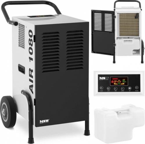 Osuszacz powietrza marki MSW skutecznie usuwa wilgoć w budynkach. Urządzenie przyspiesza prace budowlane takie jak tynkowanie i malowanie, a także pozwala osuszać pomieszczenia po zalaniu oraz zwalczać pleśń. Nadaje się do wnętrz o metrażu 80 m2. Wydajność sprzętu wynosi 50 l na dobę, a moc 860 W. Zapewnia cyrkulację powietrza 630 m3/h. Sprzęt posiada dodatkowe opcje: automatyczne odmrażanie i automatyczny restart. Sygnalizuje również ewentualne uszkodzenie czujnika. Osuszacz powietrza wyposażono w nylonowy filtr, który można prać. Wysoka mobilność wynika z zastosowania dwóch kółek i ergonomicznej rączki. Urządzenie jest proste w obsłudze dzięki wyświetlaczowi LED.
