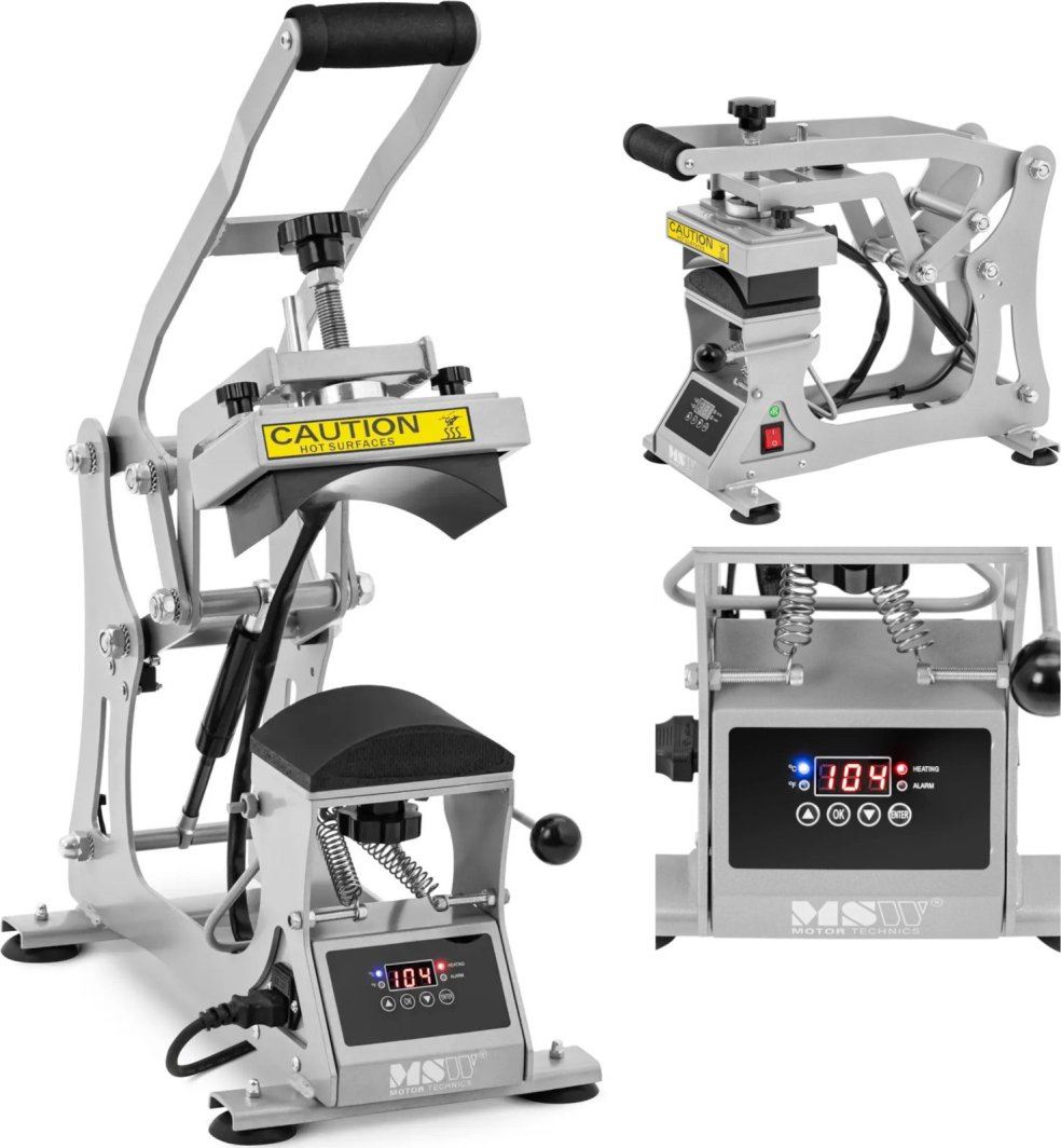 Prasa termotransferowa do czapek firmy MSW będzie niezbędnym narzędziem w branżach zajmujących się modą, odzieżą sportową i artykułami promocyjnymi. Można użyć jej do projektowania spersonalizowanych czapek na imprezy, dla klubów sportowych lub jako towar do odsprzedaży. Maszyna jest niezwykle wszechstronna i nada się do tworzenia nadruków na bejsbolówkach, snapbackach czy czapkach typu beanie. Prasa do sublimacji zagwarantuje precyzyjny transfer grafik o wymiarach do 8 x 14 cm. Dzięki precyzyjnym czujnikom, równomiernemu rozprowadzaniu ciepła i cyfrowemu wyświetlaczowi LCD, prasa zapewni najwyższy poziom kontroli. Ustawienie temperatury w zakresie 0 - 250°C daje pewność, że motywy zostaną przeniesione na materiały z najwyższą dokładnością. Cyfrowy wyświetlacz LCD ułatwi dobór i monitorowanie parametrów roboczych. Prasa posiada timer, który ustawia się w zakresie od 0 do 17 minut. Zintegrowane zabezpieczenie przed przegrzaniem zadba o dodatkową ochronę urządzenia i materiału. Zapobiegnie nagrzewaniu się elementów grzejnych do zbyt wysokich temperatur i zapewni bezpieczne użytkowanie. W przeciwieństwie do modeli obrotowych ta prasa zajmie niewiele miejsca. To sprawia, że będzie ona idealnym wyborem do użytku w małych punktach ksero lub pracowniach hobbystycznych.