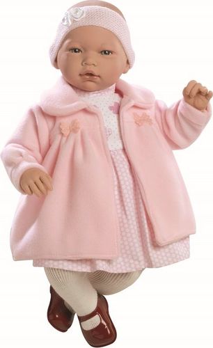 Lalka bobas Nadia w różowym płaszczyku to hiszpańska lalka 46 cm dla dzieci powyżej 3 roku życia.