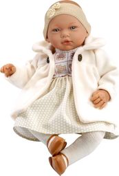 Lalka bobas Nadia w białym płaszczyku to hiszpańska lalka 46 cm dla dzieci powyżej 3 roku życia.