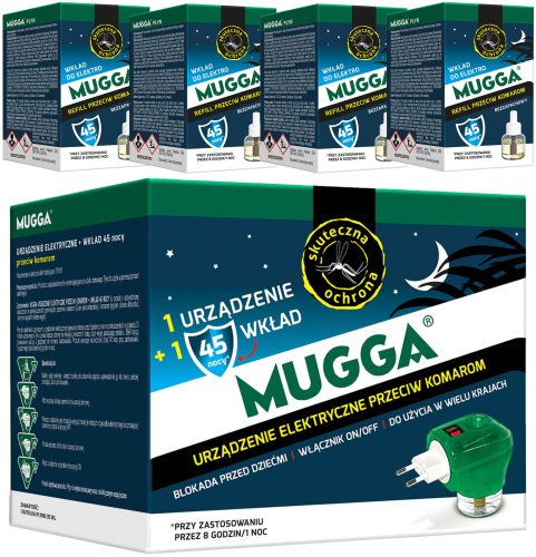 Mugga Urządzenie elektryczne z wkładem na komary Mugga 45 nocy 35ml + 4x Wkład płyn na komary Mugga 45 nocy 35ml