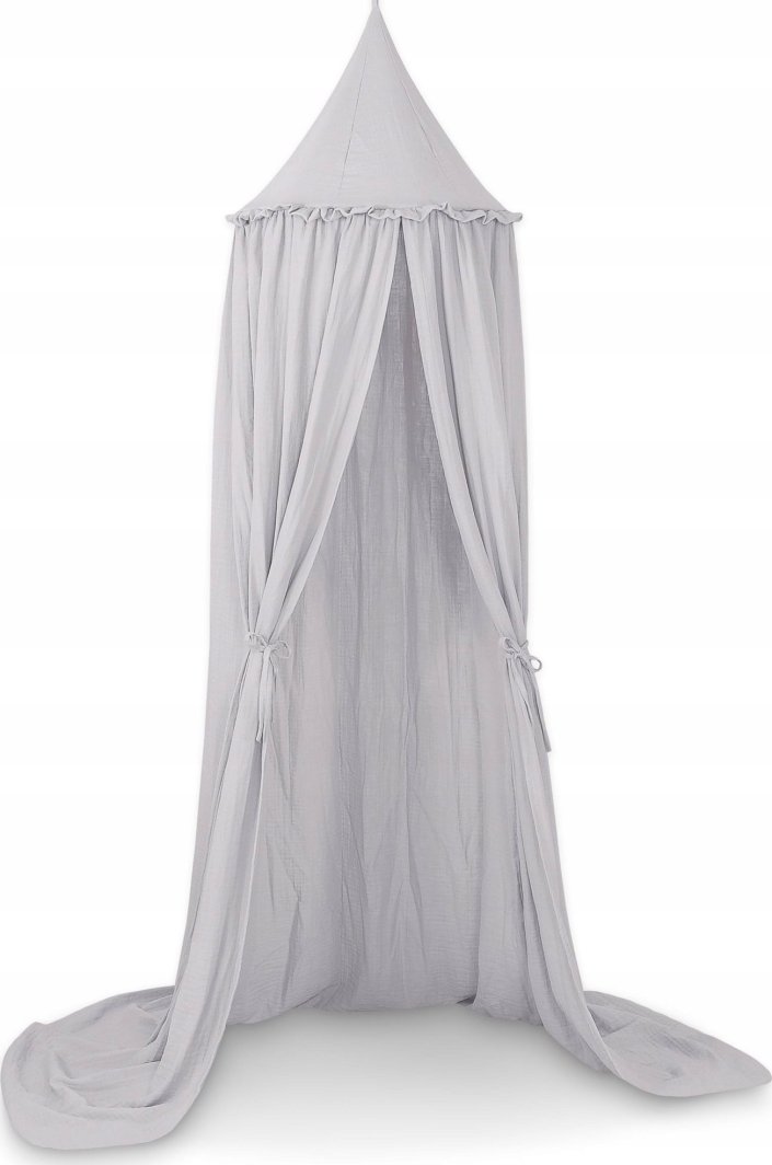 Muślinowy baldachim w odcieniu szarości to stylowy dodatek do pokoju dziecięcego, który wprowadza ciepły i przytulny klimat. Dzięki delikatnej falbance oraz estetycznemu wyglądowi, baldachim doskonale sprawdzi się jako dekoracja łóżeczka, tworząc niepowtarzalną atmosferę. Wykonany z 100% bawełnianego muślinu, nie tylko zachwyca swoim designem, ale również jest funkcjonalny.