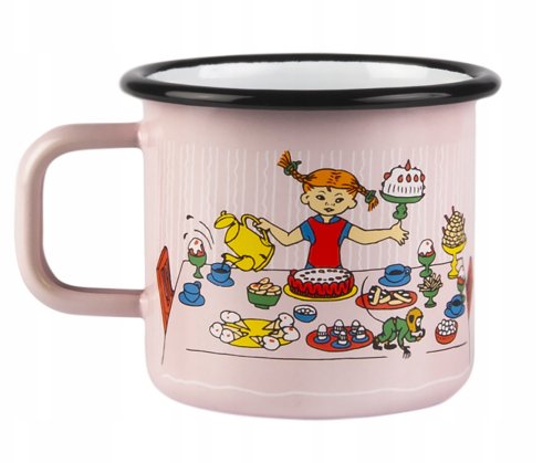 Muurla emaliowany kubek Pepė Ilgakojinė o pojemności 370 ml to niezwykły produkt, który harmonijnie łączy funkcjonalność z estetyką. Inspirowany postacią Pepi, znanej z książek Astrid Lindgren, kubek ukazuje jej słynny dom w Villa Villekulla. Doskonały na różnorodne okazje, w tym urodziny, idealnie nadaje się do serwowania zarówno gorących, jak i zimnych napojów.