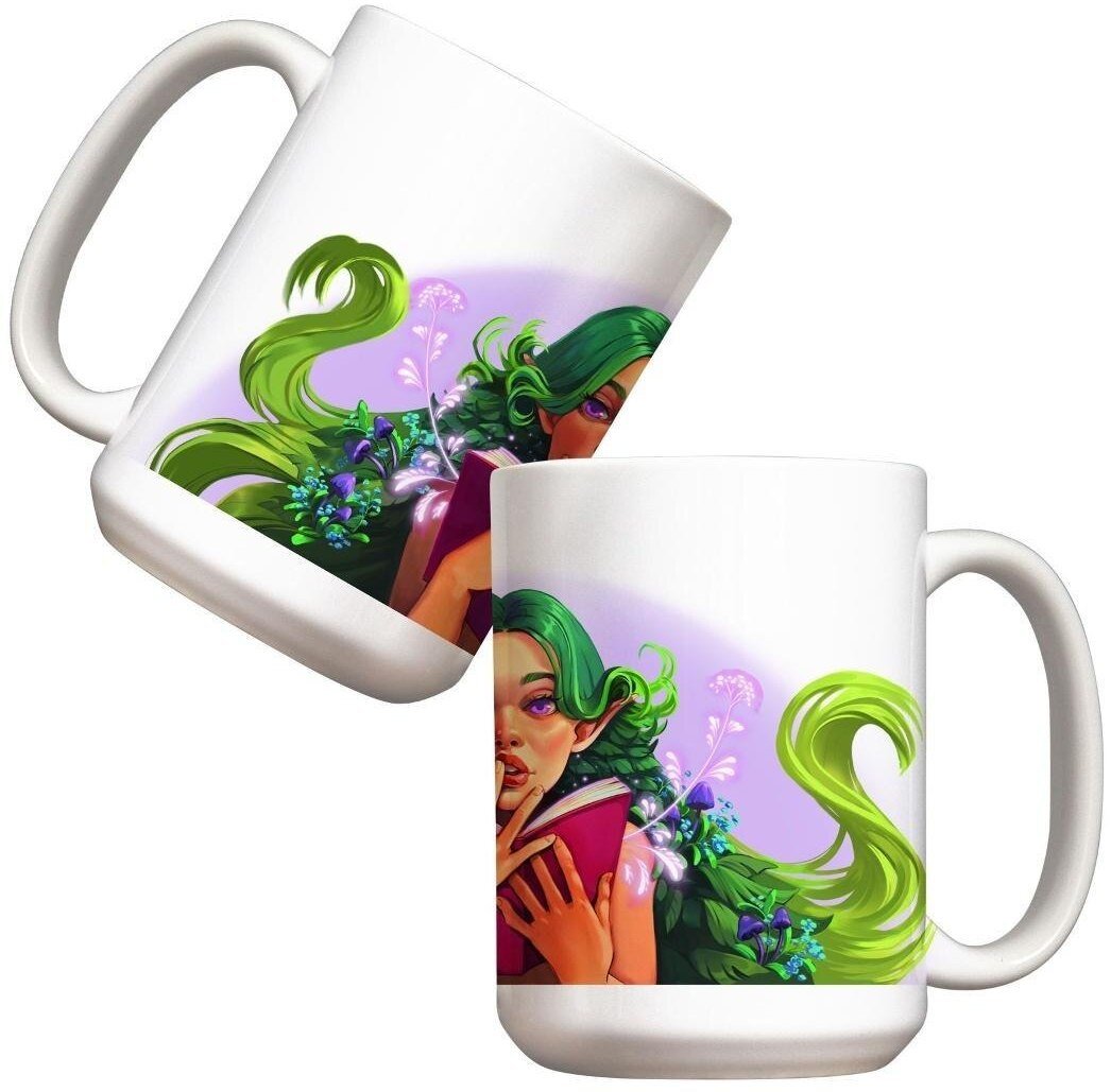 Eteryczna fae o długich, lśniących włosach i magicznym spojrzeniu siedzi pośród kwiatów, zanurzona w lekturze starodawnej księgi. Teraz może być z Toba cały czas, dzięki naszemu kubkowi! Pojemność: 440ml Wysokość: 120 mm Średnica: 85 mm Materiał: ceramika