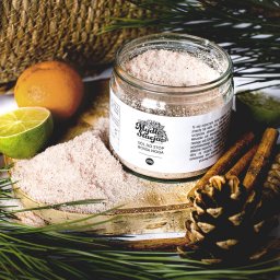 SKŁAD: Różowa sól himalajska, siarczan magnezu ( sól Epsom), olejek eteryczny z may chang, olejek eteryczny z cynamonu, olejek eteryczny z sosny