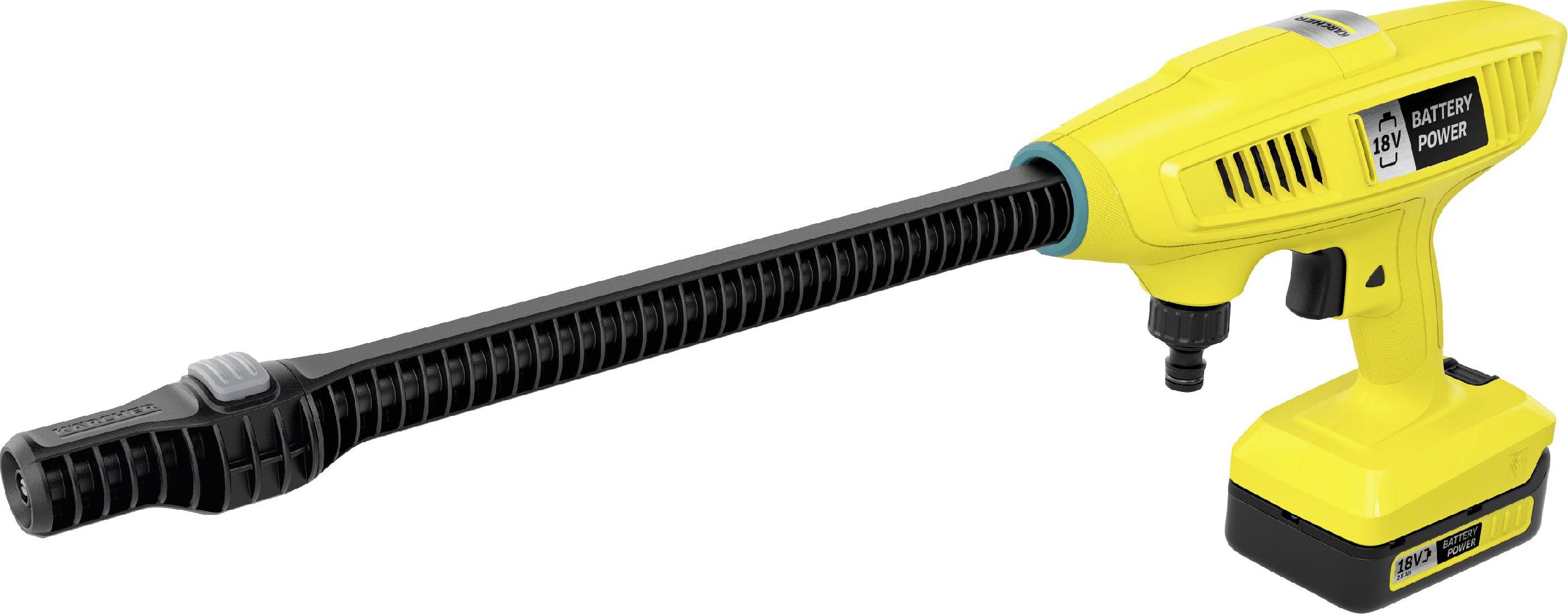 KHB 4-18 jest zasilany wymienną baterią 18 V, która jest kompatybilna z wieloma innymi urządzeniami w platformie akumulatorowej Kärcher 18 V. Czas pracy z akumulatorem 2,5 Ah wynosi około. 14 minut, ponieważ zazwyczaj pracujesz tylko przy krótkich nakładach natryskowych, rzeczywisty czas pracy może być znacznie dłuższy. Pozostały czas pracy można odczytać na wyświetlaczu LCD, gdzie jest pokazywany z dokładnością do minuty. W razie potrzeby można użyć większego akumulatora 5,0 Ah, aby podwoić czas pracy.
