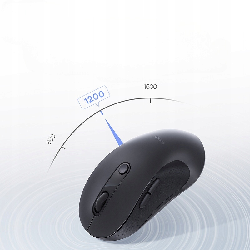 Baseus F02 oferuje trzy poziomy regulacji DPI: 800 / 1200 / 1600. Niskie DPI sprawdzi się przy precyzyjnych zadaniach, takich jak edycja zdjęć, średnie jest idealne do codziennej pracy biurowej, a najwyższe pozwoli na płynne sterowanie w grach czy szybszą obsługę dużych ekranów.