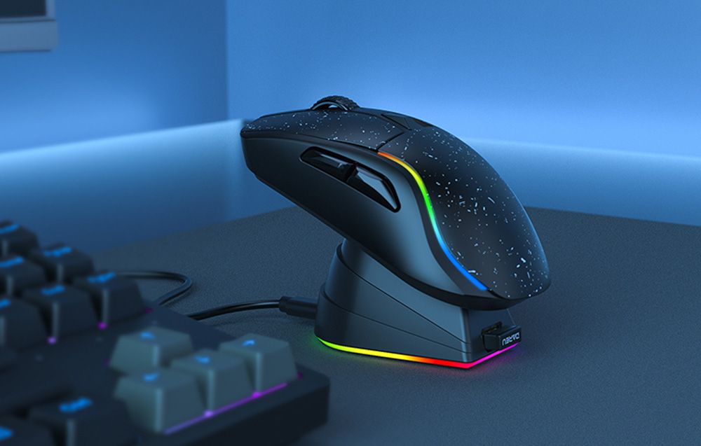 Bezprzewodowa mysz Dareu A950 wykorzystuje sensor optyczny i technologię KBS II, co przekłada się na niezawodność i precyzję. Co więcej, produkt połączysz z kompatybilnym urządzeniem na 3 sposoby, a dołączona do zestawu stacja ładująca pozwoli przygotować mysz do ponownej pracy. Z kolei lekka i ergonomiczna konstrukcja zapewnia komfort użytkowania, a podświetlenie RGB nadaje zestawowi wyjątkowego charakteru.
