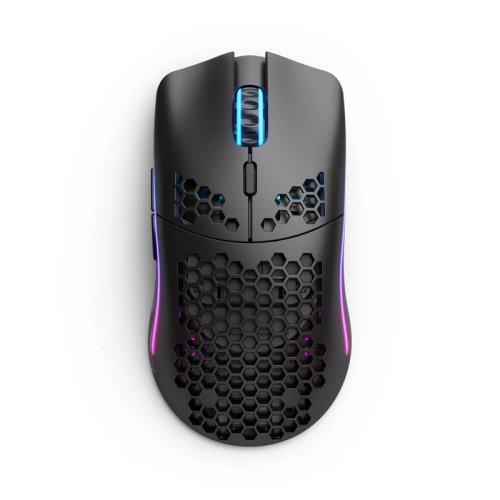 Glorious Model O- Wireless Matte Black to mysz z najwyższej półki, która oferuje bezprzewodową pracę. Model ten posiada wytrzymałą konstrukcję o niewielkiej wadze. Jedynie 65 gram! Producent wykorzystał tutaj obudowę Honeycomb, która nie tylko zapewnia niską wagę, ale również i świetną wentylację. Konstrukcja ta świetnie sprawdza się podczas kilkugodzinnej sesji przed komputerem.