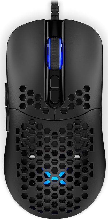 W celu efektywnej oraz efektownej obniżki wagi myszki Astera RGB, zdecydowaliśmy się wykorzystać dziurawy korpus, czyli tak zwany plaster miodu. Oprócz uzyskania ciekawego wyglądu, udało nam się zejść z masą do bardzo niskiego poziomu.