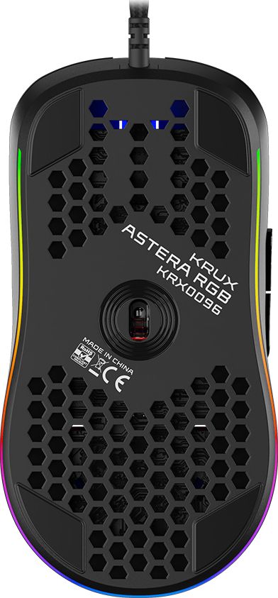 Korpus KRUX Astera RGB został przyozdobiony diodami RGB oraz naszym logotypem w kształcie „X”. Na około dolnej części myszki, ukryliśmy światełka, które tańczą w rytm zaprogramowanych świetlnych układów. Podświetlenie oczywiście można dostosować w oprogramowaniu. Wszystko zależnie od obecnej fazy właściciela gryzonia.