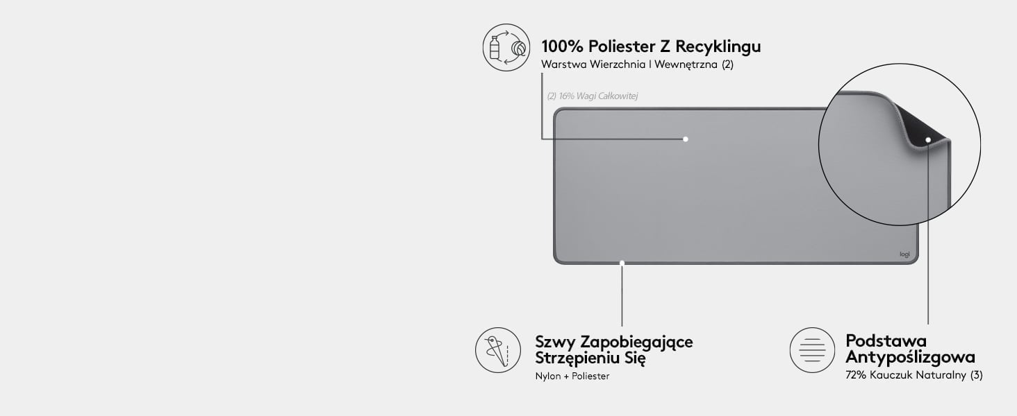 Wyrazisty kolor i nowoczesny design sprawiają, że podkładka pod mysz Logitech jest idealnym partnerem dla myszek przewodowych, bezprzewodowych i Bluetooth
