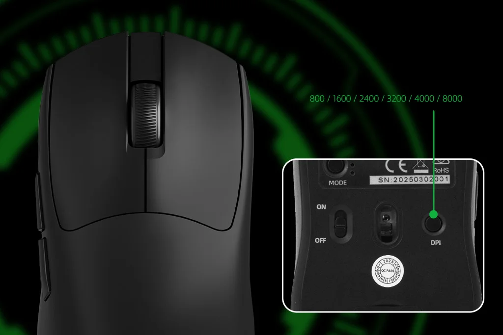 Zasilana czujnikiem optycznym PAW3104, Niro 320 zapewnia sześć ustawień DPI w zakresie od 800 do 8000. Dostosuj czułość w locie, aby uzyskać precyzyjną kontrolę w każdej sytuacji, od zadań związanych z produktywnością po intensywne gry.