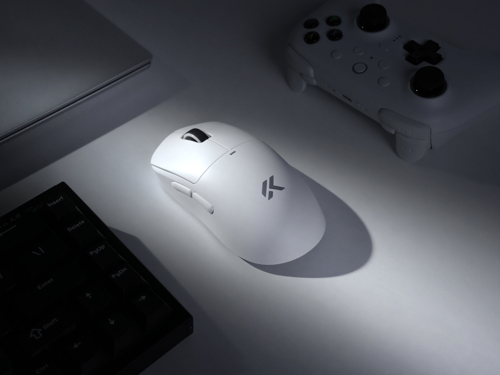 Mysz wyposażono w duże ślizgacze wykonane z czystego politetrafluoroetylenu (PTFE), które zapewniają niski opór i równomierny poślizg na różnych typach podkładek. Rozwiązanie to pozwala na precyzyjne prowadzenie myszy bez szarpnięć i utraty kontroli. Powierzchnia obudowy została pokryta gładką powłoką typu glass-like, odporną na pot i niepowodującą uczucia lepkości. Dzięki temu komfort użytkowania pozostaje wysoki nawet podczas długich sesji.