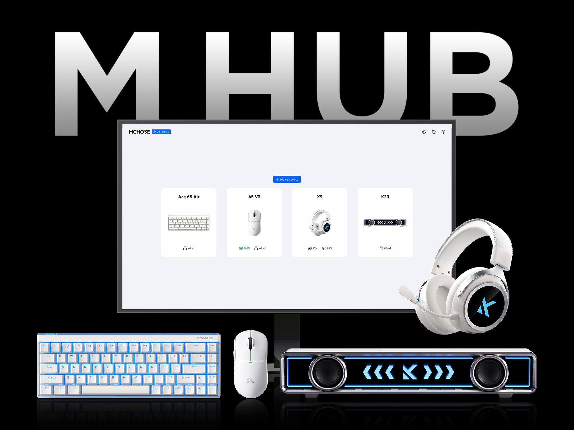 Mysz współpracuje z oprogramowaniem M HUB, dostępnym w wersji przeglądarkowej oraz aplikacyjnej. Program umożliwia zmianę poziomów DPI, przypisywanie makr oraz konfigurację funkcji poszczególnych przycisków. Intuicyjny interfejs pozwala na szybkie i czytelne dostosowanie ustawień do własnych preferencji. Dzięki temu użytkownik może łatwo dopasować sposób działania myszy do gier lub codziennej pracy bez zbędnych komplikacji.