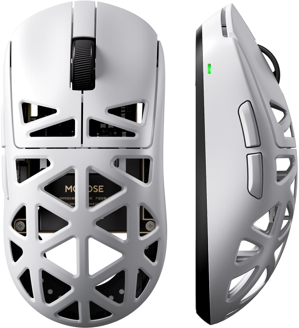 Obudowa została wykonana ze stopu magnezu, który łączy niską wagę z wysoką sztywnością konstrukcji. Przy masie 53 g (±2 g) mysz pozostaje stabilna i odporna na odkształcenia podczas intensywnego użytkowania. Niska waga ułatwia szybkie zmiany kierunku ruchu oraz precyzyjne manewrowanie, szczególnie w grach wymagających dynamicznych reakcji. Otwarta obudowa redukuje masę bez wpływu na stabilność całej konstrukcji, co przekłada się na lepszą kontrolę i mniejsze zmęczenie dłoni podczas długich sesji.
