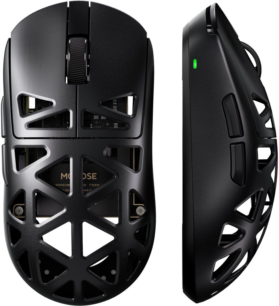 Obudowa została wykonana ze stopu magnezu, który łączy niską wagę z wysoką sztywnością konstrukcji. Przy masie 53 g (±2 g) mysz pozostaje stabilna i odporna na odkształcenia podczas intensywnego użytkowania. Niska waga ułatwia szybkie zmiany kierunku ruchu oraz precyzyjne manewrowanie, szczególnie w grach wymagających dynamicznych reakcji. Otwarta obudowa redukuje masę bez wpływu na stabilność całej konstrukcji, co przekłada się na lepszą kontrolę i mniejsze zmęczenie dłoni podczas długich sesji.