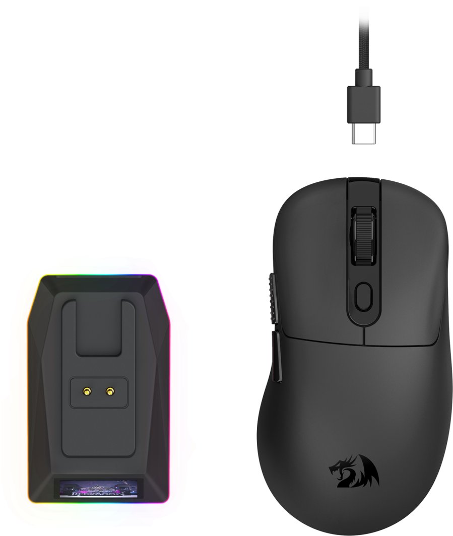 Magnetyczna stacja ładująca pozwala szybko i wygodnie uzupełnić energię bez konieczności podłączania przewodu do myszki. Wbudowany ekran LCD wyświetla najważniejsze informacje, zapewniając pełną kontrolę nad ustawieniami i stanem urządzenia. Podświetlenie RGB nadaje stanowisku gamingowemu nowoczesny, dynamiczny charakter. Wydajna bateria 400 mAh umożliwia długą rozgrywkę bez częstego ładowania. Magnetyczna stacja ładująca pełni nie tylko funkcję praktyczną, ale również stanowi efektowny element każdego setupu.