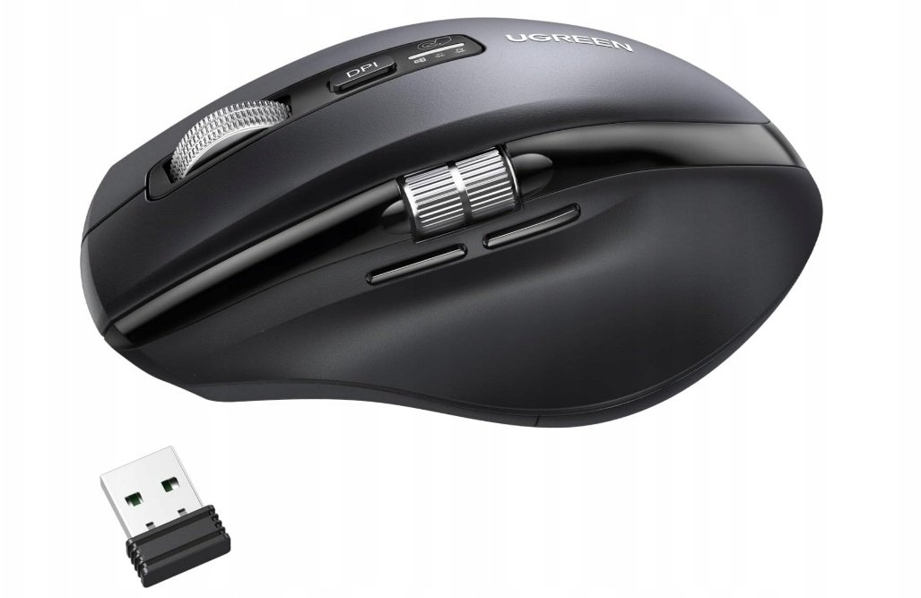Myszka Ugreen bezprzewodowa optyczna - czarna łączy wielotrybową łączność 2.4G i Bluetooth 5.4, zapewniając swobodę pracy na kilku urządzeniach jednocześnie. Szeroki zakres DPI od 1000 do 5000 umożliwia precyzyjne dopasowanie czułości do zadań biurowych i analitycznych, a szybkie przewijanie ułatwia pracę z dużą ilością danych. Dodatkowe boczne pokrętło pozwala na wygodne przewijanie w poziomie, zwiększając efektywność użytkowania. Ciche przyciski i trwała konstrukcja poprawiają komfort pracy. To funkcjonalna mysz stworzona z myślą o codziennym wykorzystaniu w wielu środowiskach systemowych.