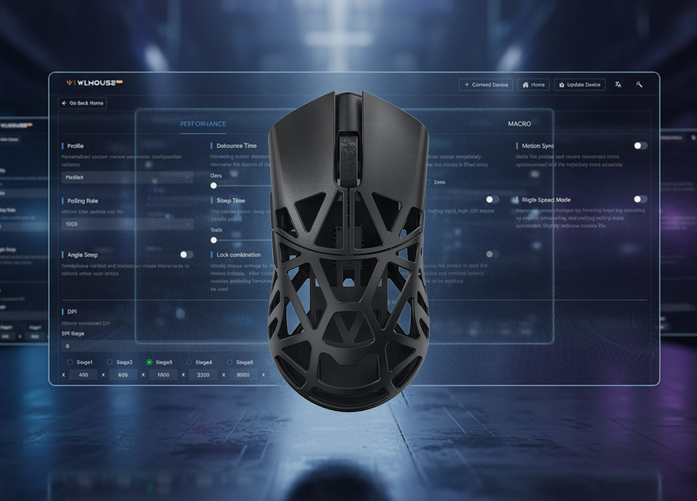 Szybko dostosuj DPI, częstotliwość odpytywania i przyciski za pomocą naszego internetowego sterownika — szybko, prosto i od razu do gry.