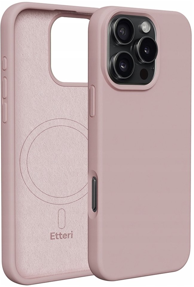 Nakładka Etteri Silicone Mag do iPhone 16 Pro w jasnoróżowym odcieniu to doskonałe połączenie estetyki z funkcjonalnością. To etui nie tylko chroni Twój telefon, ale również nadaje mu elegancki wygląd dzięki subtelnemu odcieniowi brudnego różu.
