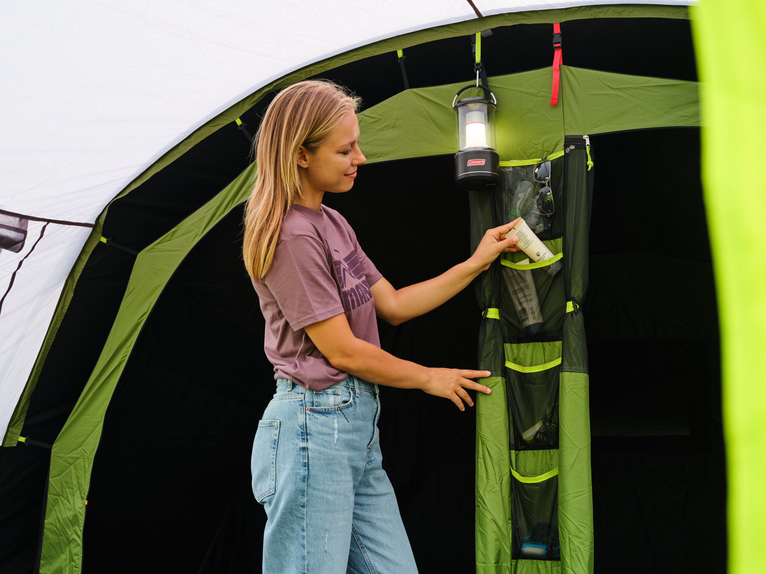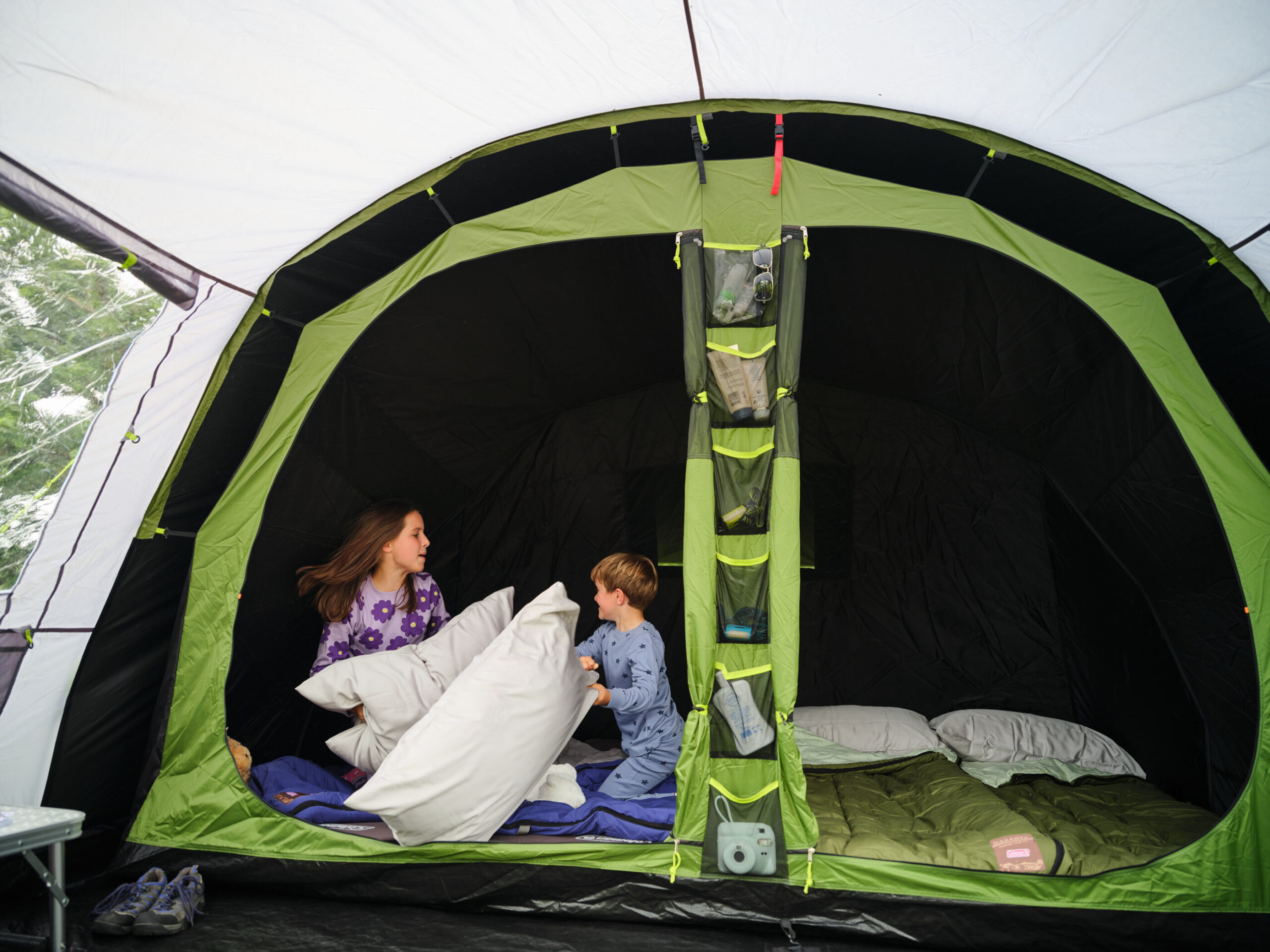 Model ten wyposażono w dwie podwieszane sypialnie w rozmiarze XXL, każda o szerokości 140 cm. Zastosowano w nich materiał BlackOut Bedroom, który blokuje do 99% światła dziennego. Tkanina ta wpływa również na termoregulację: obniża temperaturę wewnątrz maksymalnie o 5 stopni Celsjusza w dzień i zatrzymuje ciepło (do 1 stopnia więcej) w nocy. Wentylację wspierają wewnętrzne panele z przewiewnej siatki no-see-um oraz oddychający poliester PU. Pomiędzy sypialniami umieszczono organizer, a wewnątrz znajdują się kieszenie do przechowywania drobiazgów. Namiot posiada także dedykowane wejście na kabel zasilający z zewnętrznej skrzynki elektrycznej.