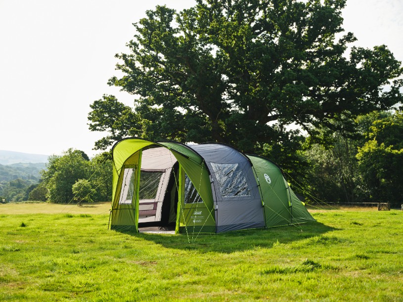 Coleman Rocky Mountain 5 BlackOut to pięcioosobowy namiot rodzinny o konstrukcji tunelowej. Charakteryzuje się przedłużonym przedsionkiem oraz wysokim sufitem, co umożliwia swobodne poruszanie się w pozycji wyprostowanej na całej długości. Wnętrze zostało doświetlone za pomocą dużych okien. Dostęp do strefy mieszkalnej ułatwia system Easy Entry – płaski, regulowany próg, który w razie potrzeby można podnieść i zabezpieczyć zamkiem błyskawicznym. Z myślą o bezpieczeństwie najmłodszych, w zamkach zastosowano materiałowe stopery, które pozwalają na szybkie otwarcie powłoki od wewnątrz.