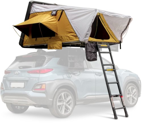 Namiot przeznaczony jest do umieszczenia na dwóch poprzeczkach dachowych. Wystarczy, że zamontujesz go do nich za pomocą dołączonych uchwytów. Przed montażem upewnij się także, że nośność dynamiczna dachu Twojego samochodu oraz belek wynosi 75 kg lub więcej. Skorupa namiotu pod wpływem temperatury może ulec odkształceniu i jest to całkowicie normalne.