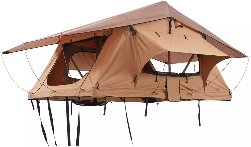 Namiot dachowy VEVOR jest gotowy na cztery pory roku. Wykonany jest z wodoodpornej tkaniny o wysokiej gęstości oraz jest wyposażony w powłokę przeciwsłoneczną i izolacyjną. Oddychająca siatka zapewnia odpowiednią wentylację, co zwiększa komfort użytkowania.