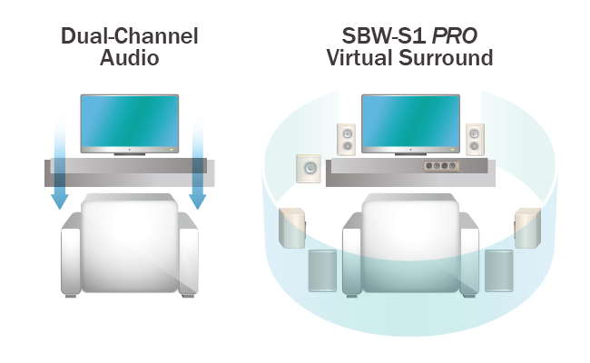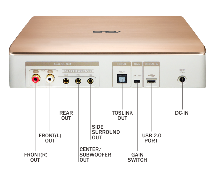 Zwykłe notebooki obsługują jedynie dwukanałowy dźwięk stereo, ale ASUS Impresario SBW-S1 PRO działa jako zewnętrzna karta dźwiękowa z prawdziwie 7.1-kanałowym audio, która zapewnia niesamowicie wciągające przeżycia rozrywkowe w Twoim pececie w jednym prostym ruchu.