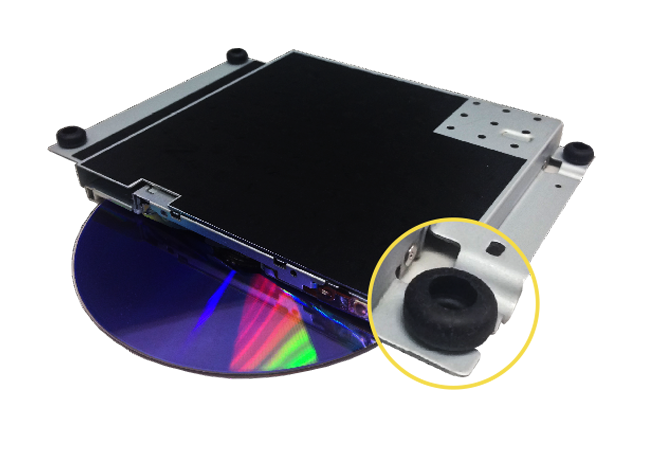 Cztery specjalnie zaprojektowane poduszki na rogach modułu stacji dysków optycznych zmniejszają wibrację i hałas maksymalnie o 8 dB*. Nawet przy maksymalnej szybkości poziom hałasu emitowanego przez stację wynosi tylko 36,3 dB(A)* — mniej więcej taki sam szum, jak w bibliotece. ASUS Impresario SBW-S1 PRO zmniejsza też szybkość napędu podczas odtwarzania płyt audio CD albo filmów DVD/Blu-ray, by jeszcze bardziej zmniejszyć hałas.