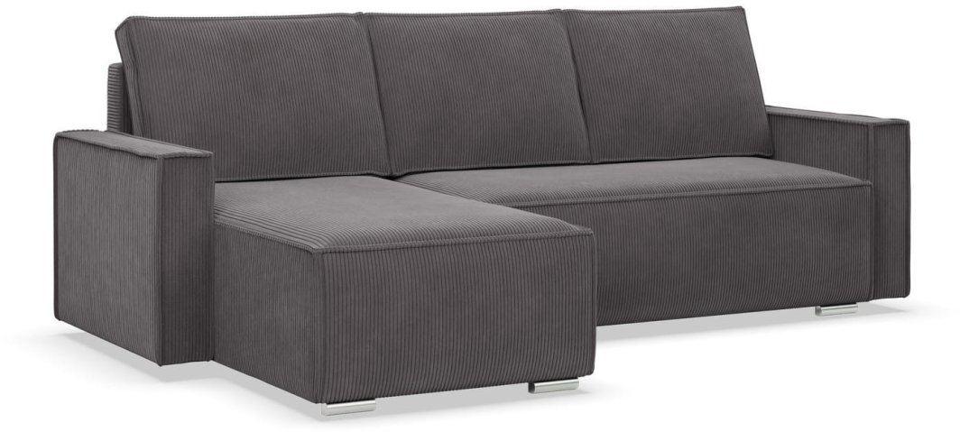 Narożnik z funkcją spania, sztruks, Union, 231x142x92 cm, ciemny szary | TYLETEGOTU