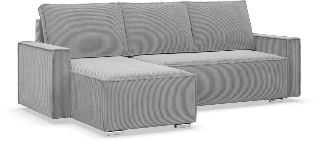 Narożnik z funkcją spania, sztruks, Union, 231x142x92 cm, jasny szary | TYLETEGOTU
