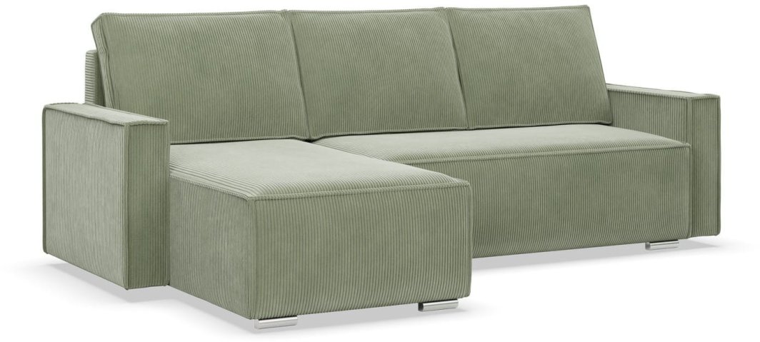 Narożnik z funkcją spania, sztruks, Union, 231x142x92 cm, oliwkowy | TYLETEGOTU