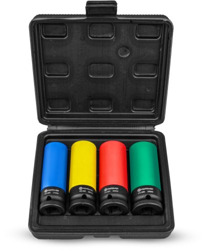 ► Nasadki udarowe MAPOWER wykonane są z wyjątkowo trwałej stali CrMo SCM-440, co zapewnia wysoką odporność na obciążenia i długą żywotność. Są przeznaczone do pracy z felgami i spełniają najwyższe standardy wytrzymałości.