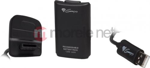 Akumulator o pojemności 1200 mAh i kabel do ładowania gamepada do Xbox 360. Możliwe jednoczesne granie i ładowanie gamepada. Posiada kabel o długości 3 m.
