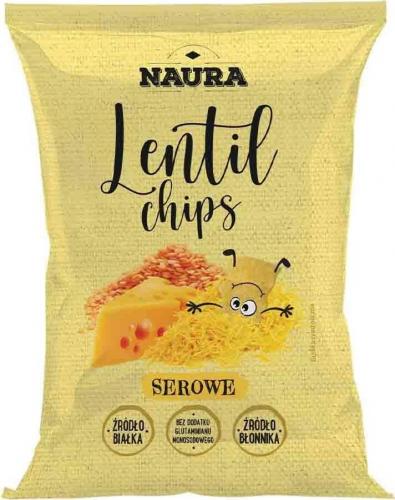 Lentil Chips serowe Naura to świetna przekąska dla dzieci i dorosłych. Chrupiące chipsy powstają na bazie soczewicy bez szkodliwych dodatków do żywności. Nie zawierają glutaminianu monosodowego, a wyrazisty smak uzyskany jest dzięki odpowiednio dobranej kompozycji przypraw i aromatycznego sera cheddar. Smażone są w wysokiej jakości oleju rzepakowym. Za sprawą bardzo dużej zawartości białka i błonnika pokarmowego zapewnią długotrwałe uczucie nasycenia. Smaczne przysmaki sprawdzą się zarówno w roli zdrowej przekąski – podczas pieszych wycieczek, jak i do chrupania w trakcie spotkania z przyjaciółmi.