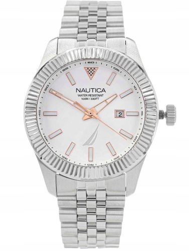 Model NAPPBS250 wyróżnia się matową białą tarczą oraz stalową bransoletą, co nadaje mu unikalnego, żeglarskiego charakteru. Okrągła koperta, wykonana z wysokiej jakości stali szlachetnej, zapewnia odporność na korozję, a mineralne szkło chroni przed zarysowaniami, co czyni go idealnym towarzyszem na co dzień.